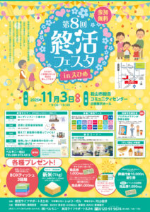 11月3日「第8回終活フェスタinえひめ」を松山市総合コミュニティセンターにて開催いたします。当日は専門家による終活セミナーや各種相談ブースの出展、家族葬の展示、肖像写真撮影会など終活にまつわるイベントが多数開催されます。さまざまな特典もご用意しておりますので、終活を考えるきっかけにぜひこの機会をご利用ください!